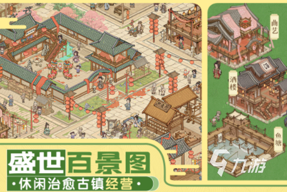在城镇空地经营方面,玩家在开垦荒地之后可种植水稻和玉米等农作物,并且在商业的发展下提供销售的渠道让百姓安居乐业。其他建筑方面,玩家可建造财神爷和演武场,还可以上演招贤台模式。在古镇经营方面,身为城主的玩家可以大力发展各种曲艺和鱼塘业,百姓在安居乐业的同时可以享受生活,各种酒楼和餐馆数量众多。