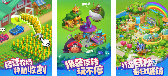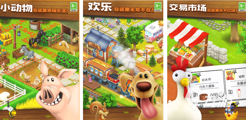 在卡通风格中,玩家经营区域广大的农场。在农作物方面,不仅有经典的玉米地,玩家还可以种植桔子等果树。小动物方面,不仅有小猪和小狗等多种家养动物,玩家还可以进行牛羊的喂养。在场地规划方面,植物场所和动物场所实行相隔规则。交易玩法丰富,玩家可进行巧克力蛋糕和冻酸奶等食品的售卖。