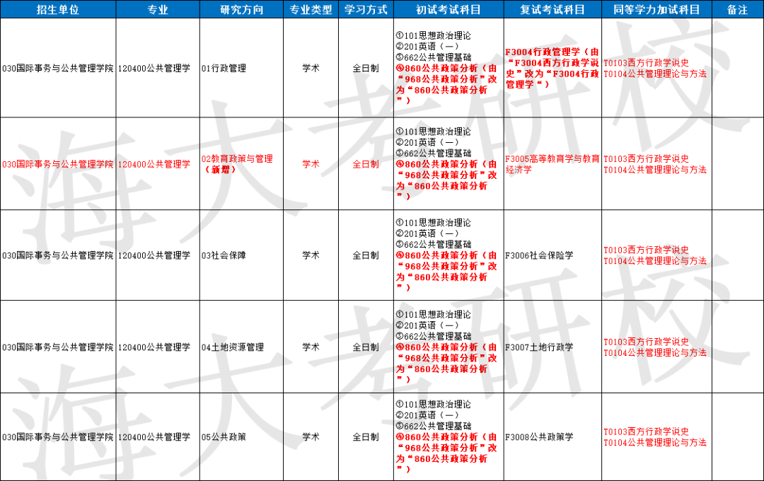👉120401行政管理、120404社会保障、120405土地资源管理、1204Z1公共政策统一归到120400公共管理专业下的各研究方向。