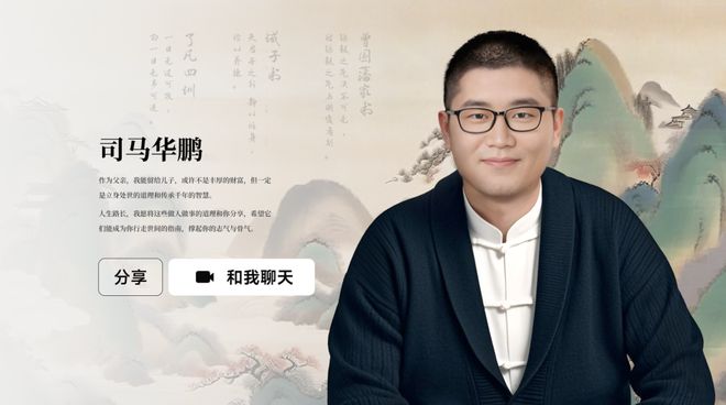 因此,在 simahuapeng.ai,司马华鹏将自己的思想、记忆、情感和人格特征通过几百万字的数据输入传递给 AI,形成了自己在硅基世界中的分身,除了像传统的大模型一样「博学」,数字人一样逼真之外,还同时具备思考能力、情绪感知与回应能力,以及与外界互动的能力,在交互体验中,与一位坐在直播间对面的真实主播交流别无二致。
