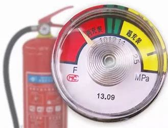 便携式灭火器自带压力表,一般情况下压力表上有三种色区。当指针指到红色区内时,表示灭火器内干粉压力值偏小,在遇到火灾时会不能喷出,说明该灭火器已经失效。这时应到正规消防器材店重新充装干粉。当指针指在绿色区内时,表示压力正常,可以正常使用。当指针指在黄色区内时,表示灭火器内的干粉压力过大,虽然可以喷出干粉,但却有爆破、爆炸危险。