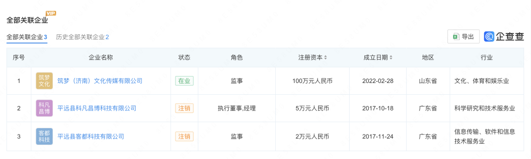 在快手平台,祁天道共有4664万粉丝,自称“快手第一户外主播”。其快手主页的“天选企业店”总销量达到1168万件,预估总销售额上亿。企查查App显示,孟凡斌(网红祁天道)名下关联3家公司,仅筑梦(济南)文化传媒有限公司1家为开业状态,其余2家已注销。该公司成立于2022年2月,注册资本100万人民币,经营范围包括文化娱乐经纪人服务、组织文化艺术交流活动、演出经纪等,由孟凡斌与妻子王婧(米菲)共同持股。关联企业信息显示,王婧共关联7家企业,其中2家为存续或开业状态,除上述公司外,其还在杭州百粒文化传媒有限公司任法定代表人、执行董事兼总经理并持股。据悉,祁天道主页“天选企业店”关联公司为杭州东吉嘉源文化传媒有限公司,该公司实控人为孟凡斌。天眼查显示,2023年7月,该公司因在有奖销售前不明确公布奖品数量,被济南市市中区市场监督管理局罚款5万。业内人士告诉记者,“目前相关部门的要求,是不允许刑满释放人员利用此身份在直播、短视频中博取同情炒作。但这类人群制作其他内容视频或直播一般是没有限制的。”来源:综合三亚警方、新闻晨报、浙江经视、网友评论等