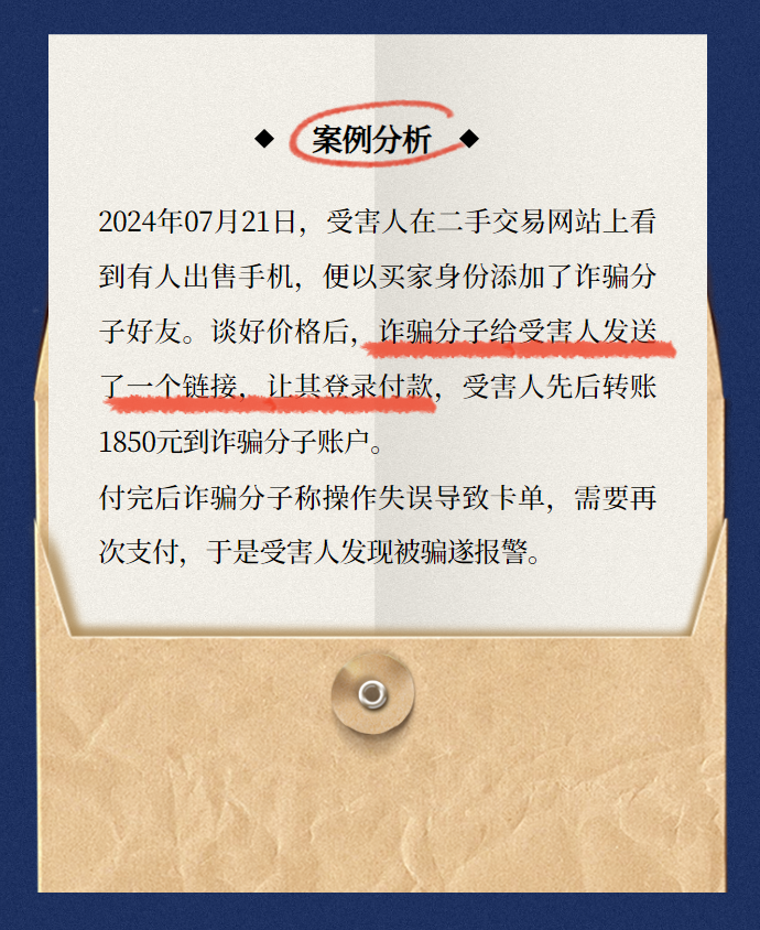 当受害人点击链接付款后,诈骗分子会以操作失误、卡单等理由,引导受害人继续转账。一旦收到转账,诈骗分子便会拉黑受害人的聊天方式,消失得无影无踪。由于脱离了交易平台,平台也无法对钱款进行追踪。(平台外的交易方式没有保障,脱离平台交易需谨慎)。