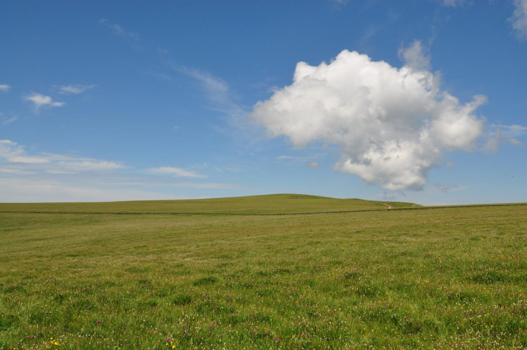 荷叶坪亚高山草甸在山西芦芽山国家级自然保护区境内,处宁武、五寨、岢岚三县交界处,海拔2600—2787米之间,面积13065亩,是管涔山的最高峰,也是华北地区少有的天然亚高山草甸。“因山巅圆盘,形似荷叶”,故名“荷叶坪”。每到盛夏,荷叶坪一碧万顷,百草丰茂,山花烂漫,凉爽宜人,所以有“高原翡翠”的美称。荷叶坪亚高山草甸的生态地位特殊重要而脆弱,每年6月返青,9月枯黄,生长期短,一旦破坏,很难自然恢复。过去曾经是天然大牧场,由于过度放牧、雨水冲刷、野猪破坏等原因,使其完整性和观赏性受到严重破坏,生物多样性和生态功能也趋于退化。