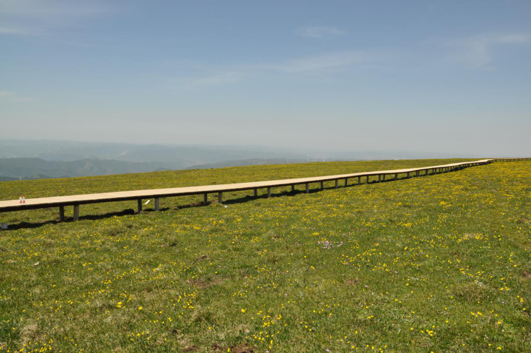 近年来,为进一步巩固封山禁牧成果,提高草甸修复水平,提升亚高山草甸生态颜值,助推山西林草高质量发展,芦芽山保护区因地制宜、分类施策,以最大限度地保存亚高山草甸生物多样性、生态平衡性和景观完美性为宗旨,坚持“适地适草、绿色高效”的原则,对荷叶坪亚高山草甸实施“人工促进天然修复”的治理措施,全方位、多角度促使荷叶坪亚高山草甸全面“康复”。为防止水土流失形成侵蚀沟、冲涮草地、带走草皮,逐年分类修筑拦截坝和石谷坊,然后在拦截坝和石谷坊层面回填草皮,播撒草籽,以提高草甸覆盖率。为便于游客游览,防止游人或车辆直接踩踏和碾压草甸,修筑了悬空步行木栈道和观景台,极大程度地避免人为对草甸造成的破坏。为治理修复野猪掘食形成的坑洼,采取人工就近移植草皮、播撒草种的措施,加速促进草甸绿化。通过人工除杀鬼见愁,控制鬼见愁发展漫延,促进其他草生长繁育,恢复亚高山草甸生物多样性。为改善草原旅游环境,进一步埋设了警示牌,摆放了垃圾桶,修建了卫生厕所、硬化了停车场。