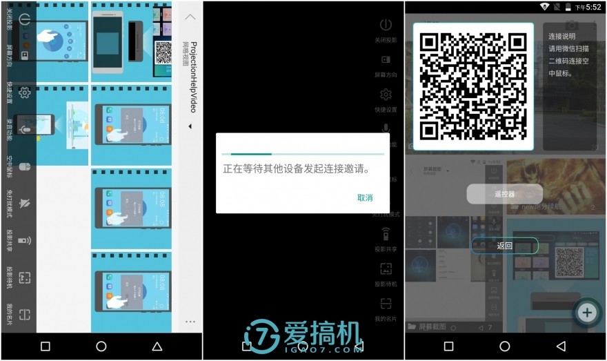 而且青橙 VOGA V 的投影不仅仅那么简单,其系统支持与别的手机进行连接,直接投影出另外一台手机的界面,实现无线同屏;同样系统也支持连接其它手机作为遥控设备,无线控制随心所欲;投影时除了在青橙 VOGA V 的屏幕上进行操作外,系统也支持在熄屏时进行操作,官方命名为“黑屏操控”。