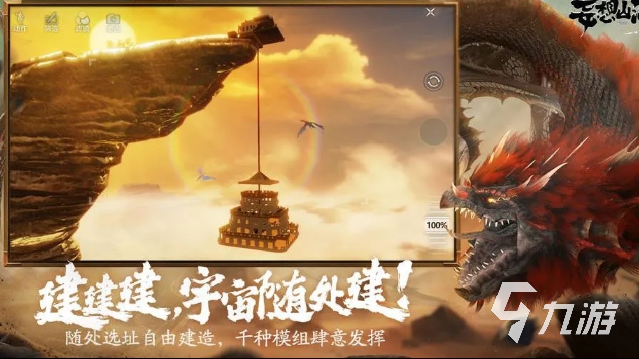 《妄想山海》是一款开放世界的沙盒游戏,该游戏背景主要围绕山海经所展开,其中有许多山海经中的异兽等着你去捕捉和驯养,以及培育成你的坐骑,并且,你还可以在游戏里建造庇护所以及强大的装备武器,去探索这个未知而又充满危险的世界,飞天入海也不成问题。